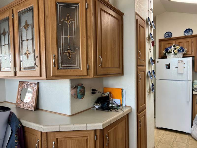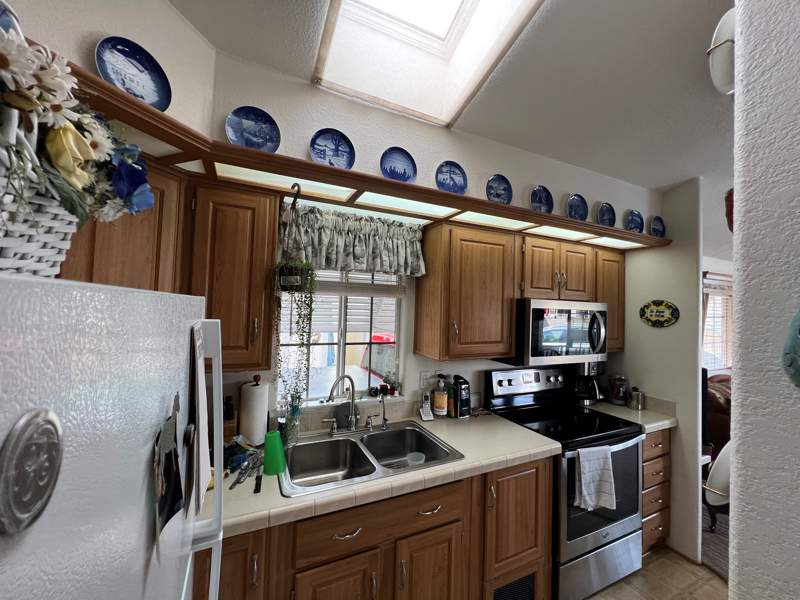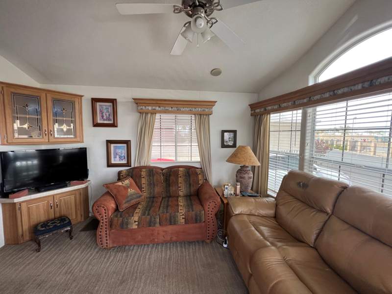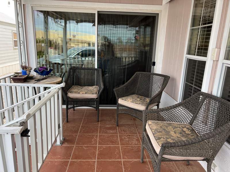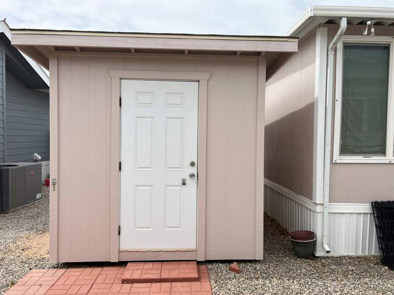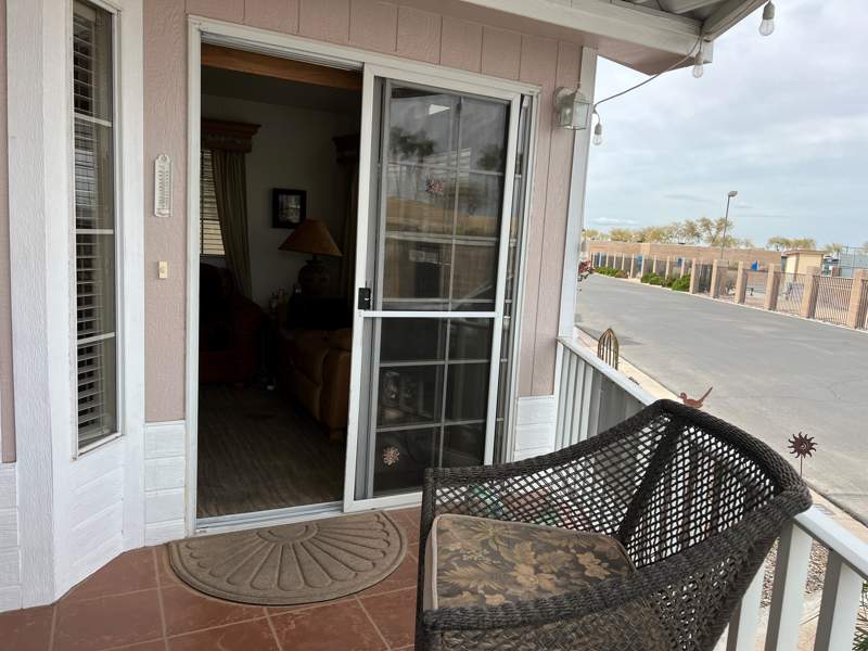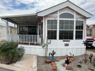 Charming park model with arizona room with washer and dryer included! Spacious shed and adorable porch great for outdoor living space! Fully furnished home including air fryer, deluxe and coffee maker. This home is located in the pet section and located among all the amenities,