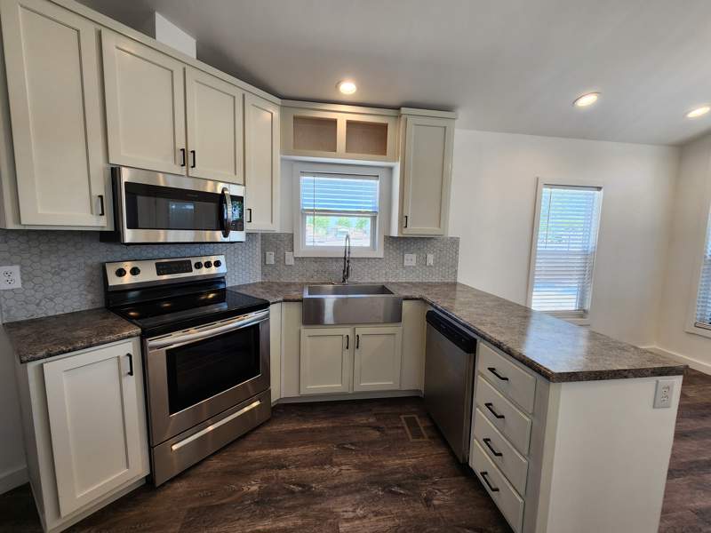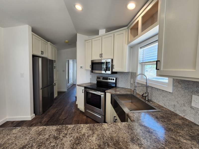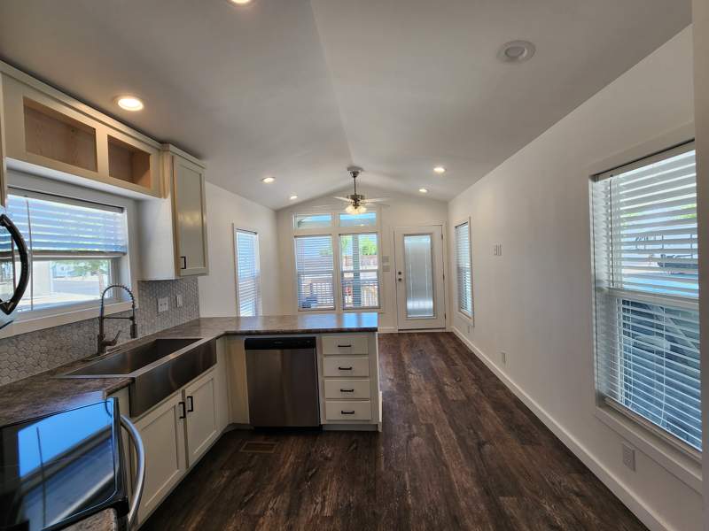 The convenience extends outdoors with a delightfully cozy front porch to sit and relax on and a dedicated carport, offering shelter for your vehicle and providing ease of access, rain or shine. Embrace modern design, thoughtful details, and the seamless blend of style and functionality offered in this home. Contact the Del Pueblo sales office today to explore this park model.
