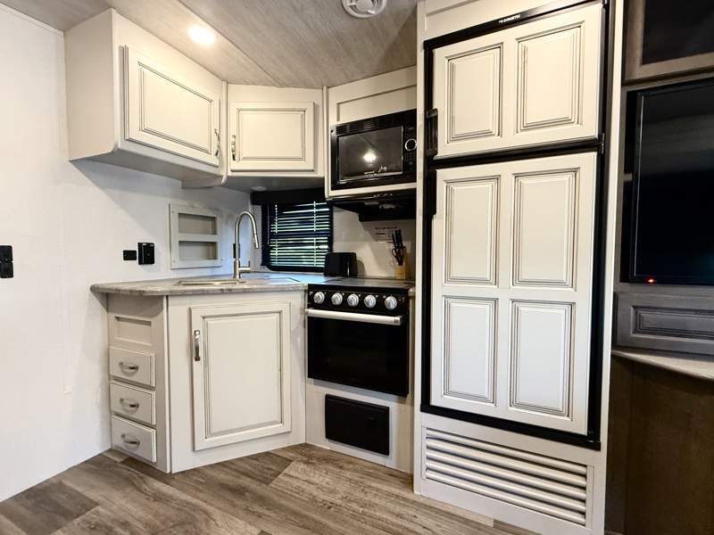 This trailer home at Del Pueblo RV Resort in Yuma, AZ, built in 2021, offers compact yet comfortable living spaces. The cozy living room is perfect for relaxing after a long day of exploring the surrounding desert landscape. The well-equipped kitchen features modern appliances such as a fridge and oven, making meal preparation a breeze. The master bedroom provides a private retreat, with ample storage space to keep belongings organized. This trailer the perfect home away from home.