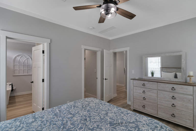 The master suite is a private retreat, complete with an attached glamour bathroom featuring a tile shower and freestanding tub, as well as a spacious walk-in closet. The open-concept living, dining, and kitchen areas are perfect for entertaining, with stainless steel appliances, a large farmhouse sink, and beautiful crescent edge countertops.