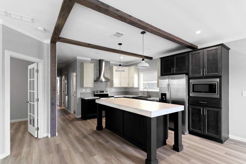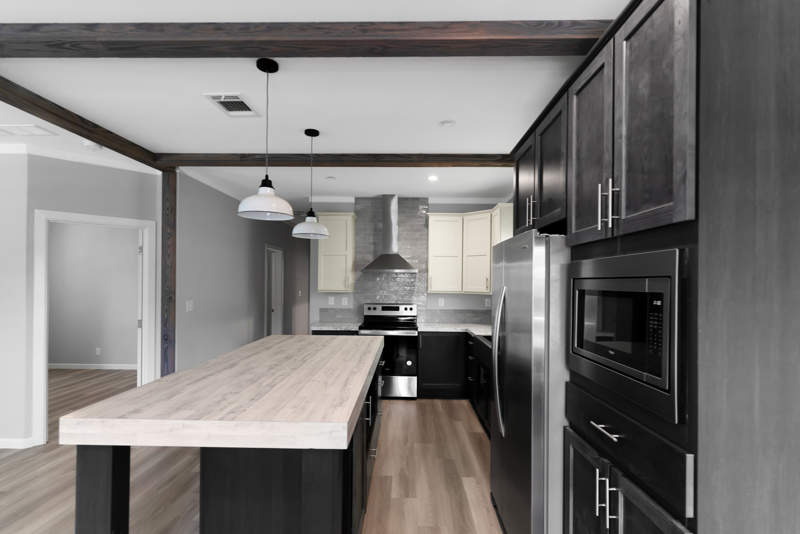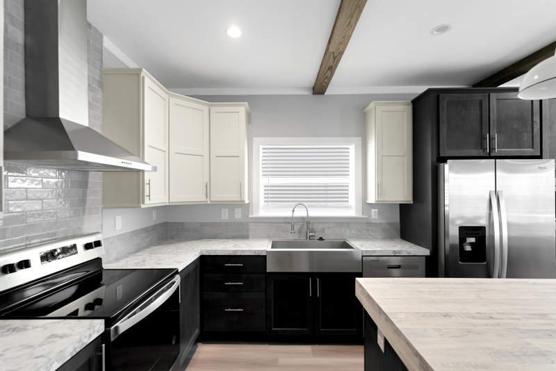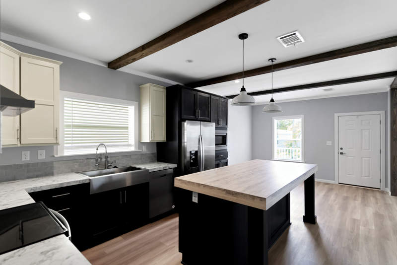 Kitchen with Stainless Steel Appliances, including an extra-large farmhouse-style sink with a gooseneck faucet