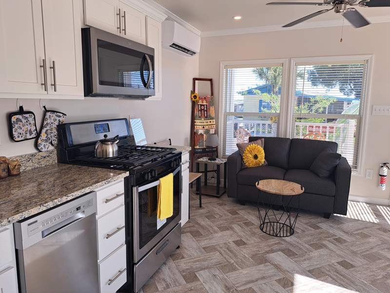 For added ease, the home includes washer and dryer hookups inside and a dishwasher to make clean-up a breeze. The kitchen also features a pantry and a full-size gas stove, perfect for preparing delicious meals. The large bathroom boasts a step-in shower with stunning tile surround, a transom window for added natural light
