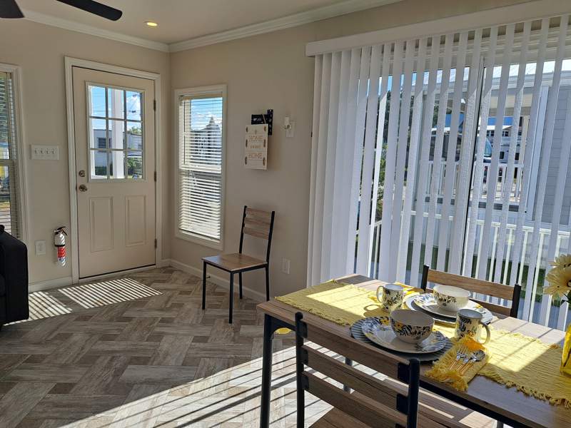 The community offers tropical surroundings, a heated pool, shuffleboard courts, and plenty of planned activities to keep you entertained. The clubhouse features a kitchen, game table, pool table, vintage arcade game, and darts, and is available for private events. Adjacent to the clubhouse is a patio with a fire pit and professional-grade grill—ideal for social gatherings.