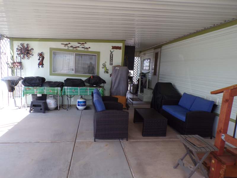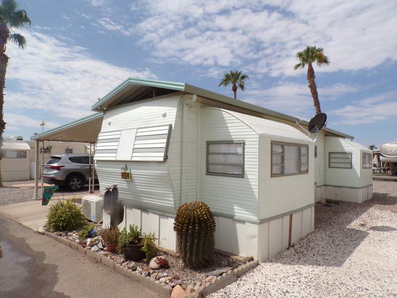 This charming Park Model home in Indian Skies community in Coolidge, AZ is the perfect cozy retreat. Built in 1977, this 1.0 bed, 1.0 bath home offers a spacious living room, a comfortable master bedroom. The exterior features a convenient carport, a storage shed whhich offers an washer/dryer combo for the added convenience of doing laundry from the comforts of home, and a roof over to shield from the Arizona sun, with a nice covered patio with chairs to sit and enjoy the Arizona evenings. Inside, the home is equipped with essential appliances such as a fridge, oven, microwave. Dual mini splits have been installed to keep you cool in the summer and warm int he winter.