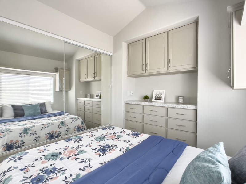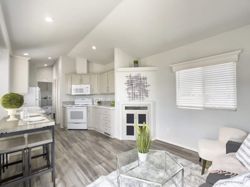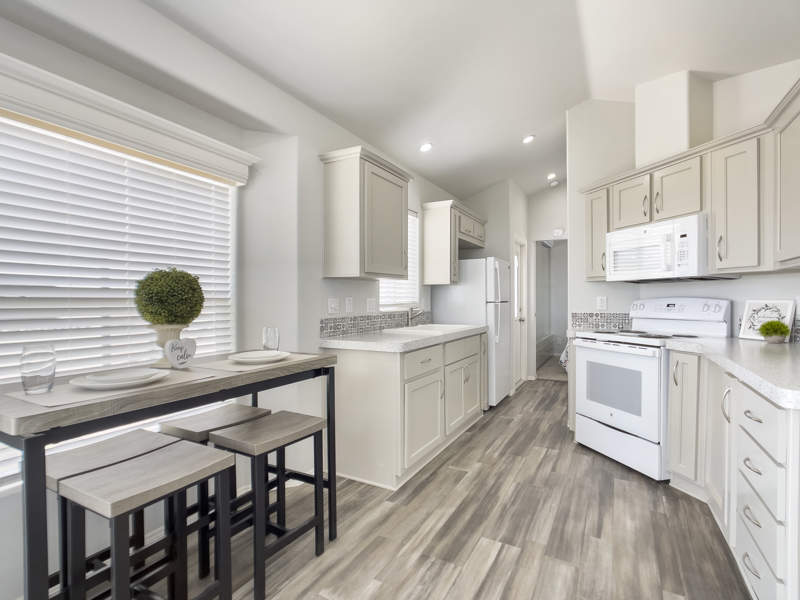 This adorable house gives you everything you need to call this place your home. It features high vaulted ceilings throughout and white wooden valances that truly add character and charm. This cute gem offers beautiful off-white cabinets and Cupboards in the Kitchen, Bathroom and Bedroom. The light-colored countertops, beautiful backsplash and white appliances create a very open and airy feel that you are sure to love.