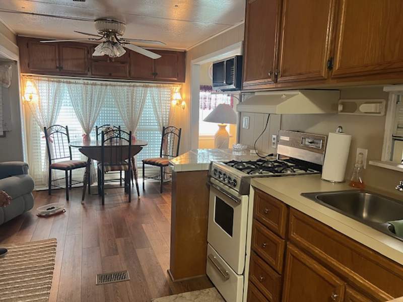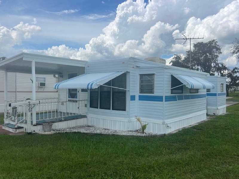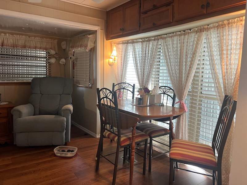 This cozy 432 square feet Travel Trailer home at Landing RV Resort in Zephyrhills, FL offers a quaint living space with 1 bedroom and 1 bathroom. Built in 1983 by Krop, this charming home includes a living room, dining room, Florida room, kitchen, and master bedroom. The home also features a shed and patio for outdoor relaxation, while the interior boasts modern appliances such as an oven, fridge, microwave, hot water heater, and central A/C.