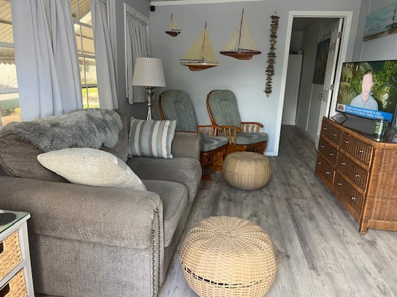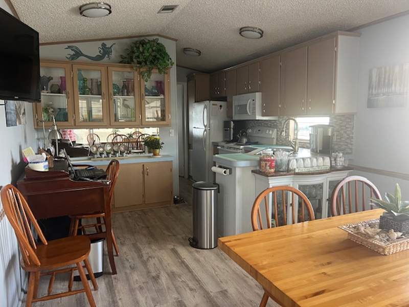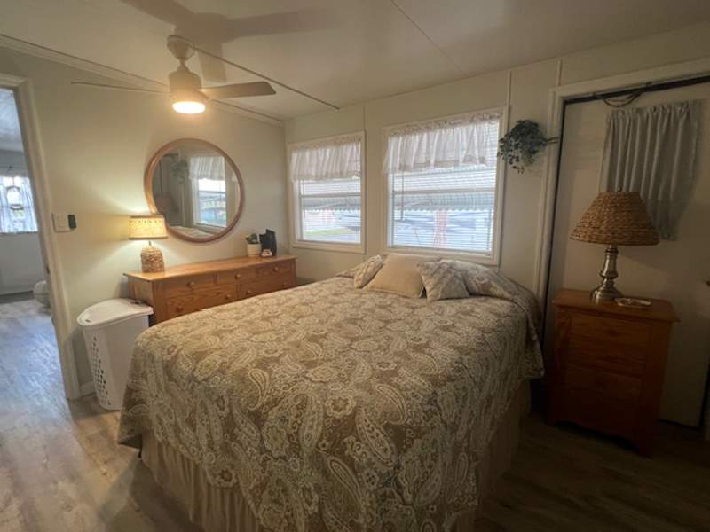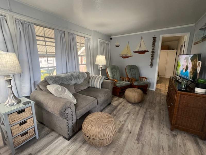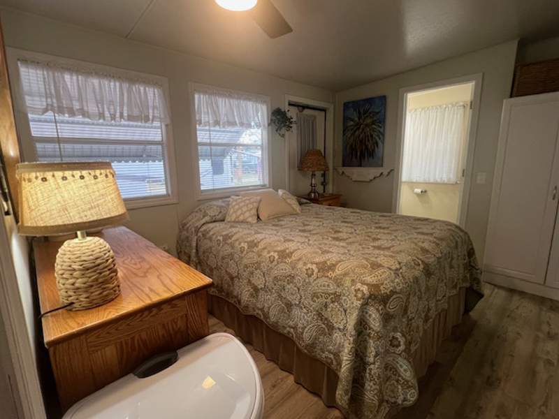 Step into warm, cozy comfort with this beautifully decorated two-bedroom, two-bath Park Model home, perfectly situated on a corner lot offering ample storage both inside and out. Featuring a spacious living area, abundant cabinet space, and tasteful furnishings, this home combines comfort and style effortlessly.