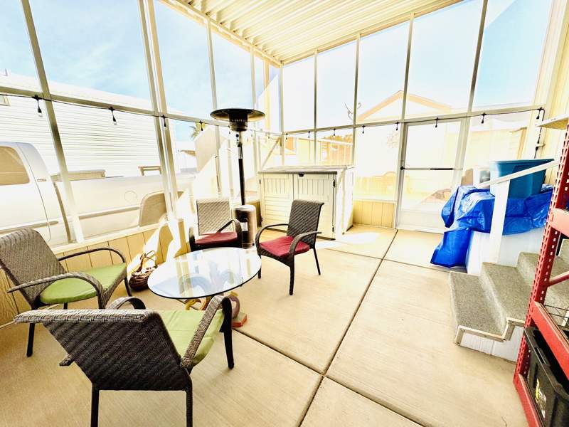 This charming 399 square feet manufactured home in Las Quintas features a cozy living room, a spacious master bedroom, a fully equipped kitchen with a breakfast nook. The exterior of the home boasts a carport for convenient parking, a patio for outdoor enjoyment, durable cemplank siding, a shed for storage, and attractive tile accents. Inside, the home is equipped with modern appliances including an oven, fridge, microwave, hot water heater, and central A/C for comfortable living year-round.