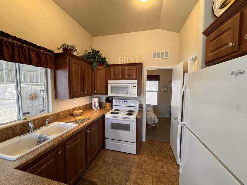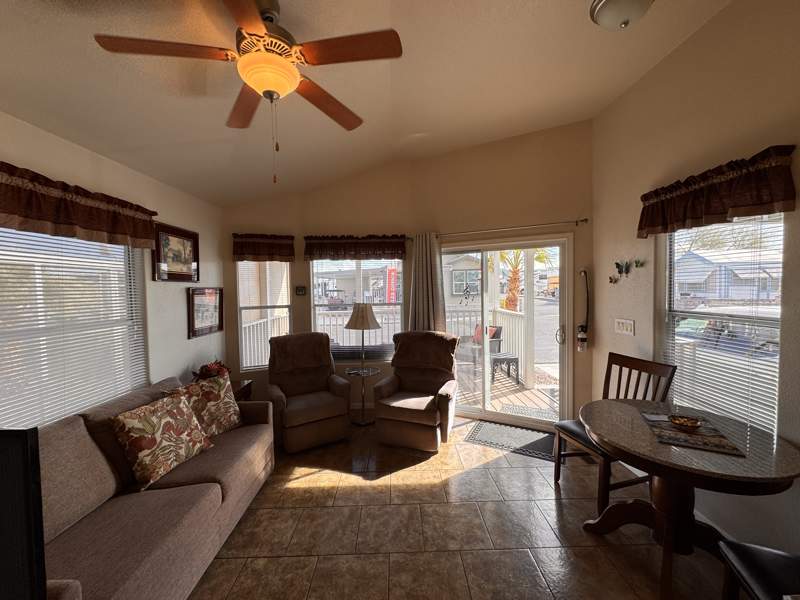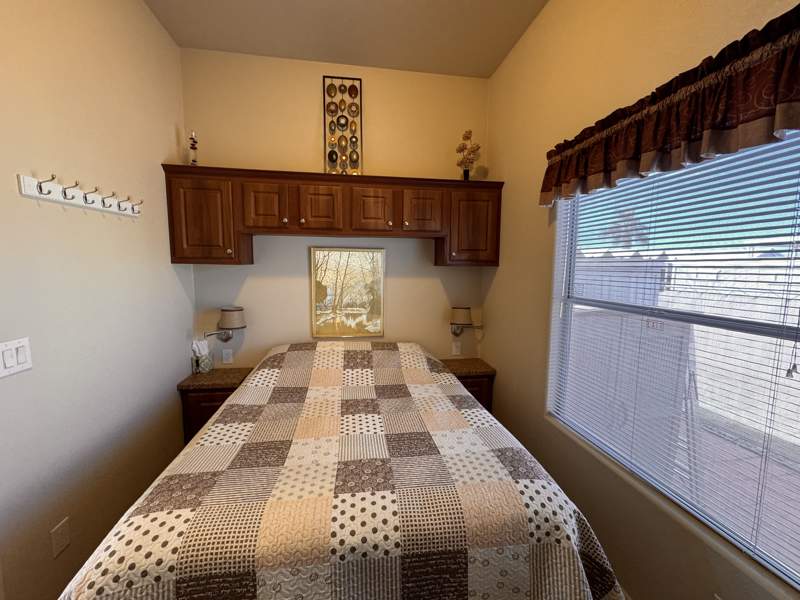 This cozy living space comes with 1 bedroom and 1 bathroom. The home features a well-designed layout with a living room, master bedroom, kitchen, and breakfast nook. The exterior of the home includes a shed, patio, screened porch, and Cemplank siding. The shed has a new refrigerator. a deep freeze, an air compressor, tool bench and all tools stay! Inside, the home is equipped with modern appliances such as an oven, fridge, microwave, hot water heater, central A/C, heat pump, and electric heating. Call 928-305-9005 ext 1 to see this Park Model today!