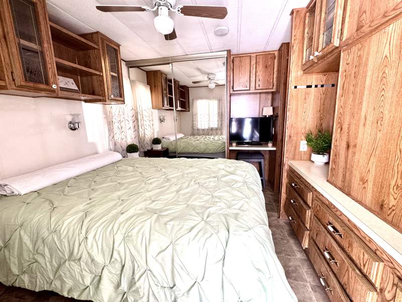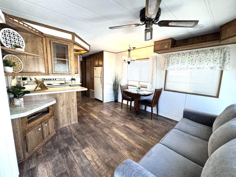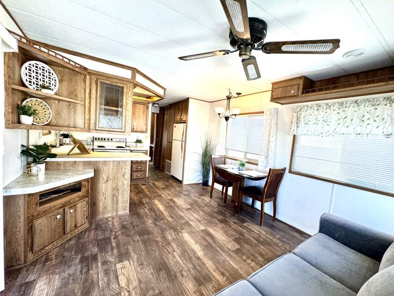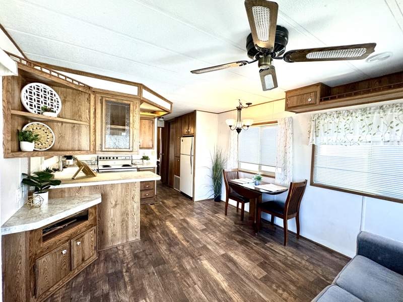 6 Months Free Rent! This charming Park Model home in Las Quintas, Yuma, AZ offers 6 Months Free Lot Rent. Enjoy a cozy atmosphere with a spacious living room, separate dining area, a master bedroom, and a well-equipped kitchen. This quaint home boasts a carport for convenient parking. The interior features include an oven, fridge, and hot water heater, making this home perfect for a couple or solo dweller looking for a comfortable living space.