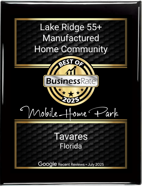 Lake Ridge, 55+ Community has been named the 2025 Best Mobile Home Park in Tavares by BusinessRate. This honor is bestowed by the feedback of our own customers based on the customer service of our onsite team. Congratulations to...
