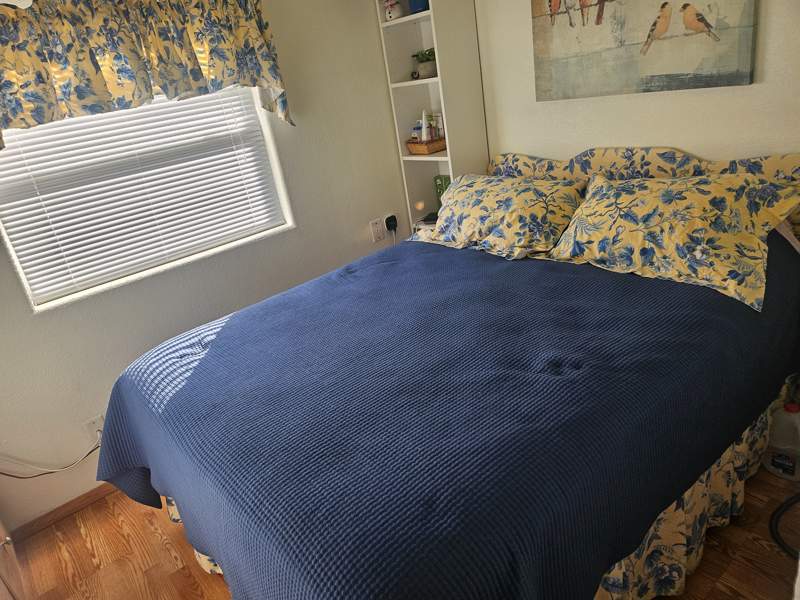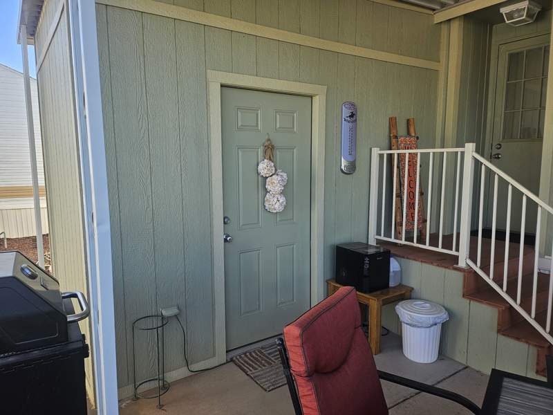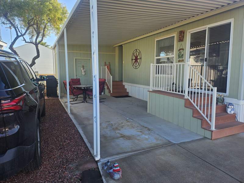 This charming foot Park Model home at Quail Run RV Resort in Arizona City, AZ offers a cozy and inviting living space. Built in 2007 by Laurel Creek, this 1.0 bed 1.0 bath home features a comfortable living room, a spacious master bedroom, a fully equipped kitchen with a breakfast nook, and a convenient laundry room. The exterior of the home includes a covered carport, a storage shed, a patio for outdoor relaxation, and durable Cemplank\Smart Panel siding. Inside, you will find modern amenities such as an oven, fridge, microwave, washer, dryer, hot water heater, central A/C, forced air heating, and electric appliances, making this home a perfect retreat for a solo resident or a couple. Park Model has new window in front and has been painted inside and out. This home is very clean and fully furnished and ready to move in. Make this your winter Home.