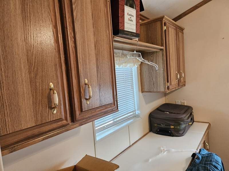 This 385 square feet Park Model at Quail Run RV Resort in Arizona City, AZ offers a cozy living space with 1 bedroom and 1 bathroom. Built in 1995 by Cavco, this home features a spacious living room, a comfortable master bedroom, a fully equipped kitchen, and a cozy breakfast nook. The exterior of the home includes a carport for convenient parking, a shed for extra storage, a patio for outdoor relaxation, and beautiful trees on the property. The home is enclosed by durable aluminum siding and features an asphalt driveway.