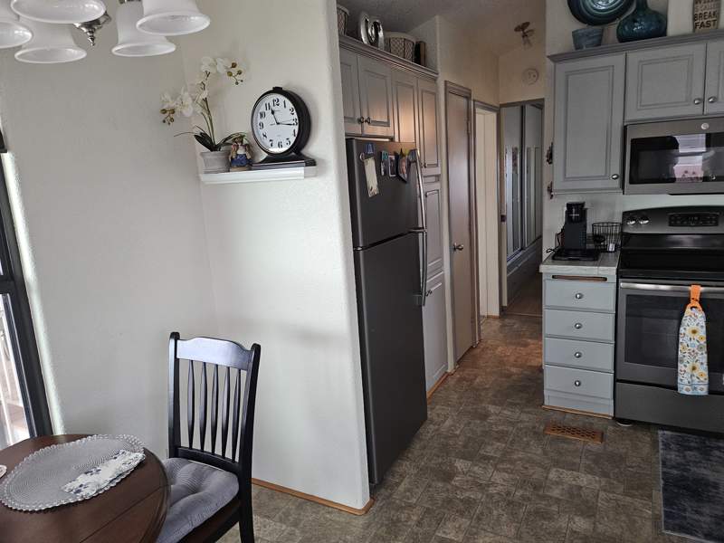 This charming park model home in Quail Run RV Resort is the perfect retreat for those looking to enjoy a relaxed lifestyle in Arizona City. Built in 2006 by Laurel Creek, this cozy home features 1.0 bedroom and 1.0 bathroom, along with a spacious living room, a well-equipped kitchen, a breakfast nook, and an inviting Arizona room. The exterior of the home boasts a carport, shed, deck, patio, open porch, and mature trees on the property, all surrounded by vinyl siding and asphalt. New screens on windows, outside painted 2025. This unit has built in dishwasher along in inside laundry facility. This unit has beautiful patio for entertainment. Also has an outside storage shed.