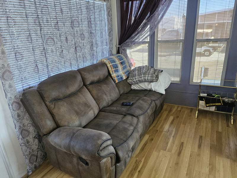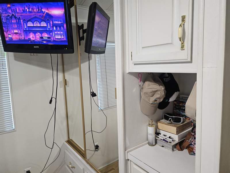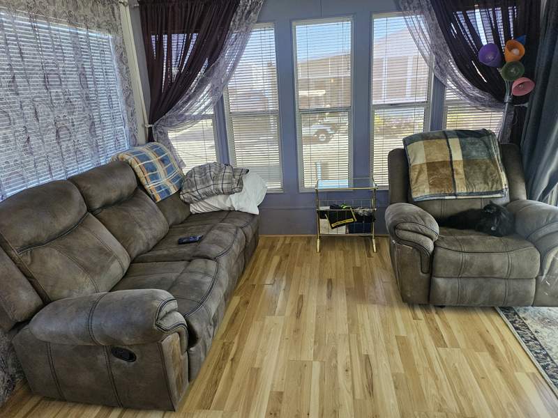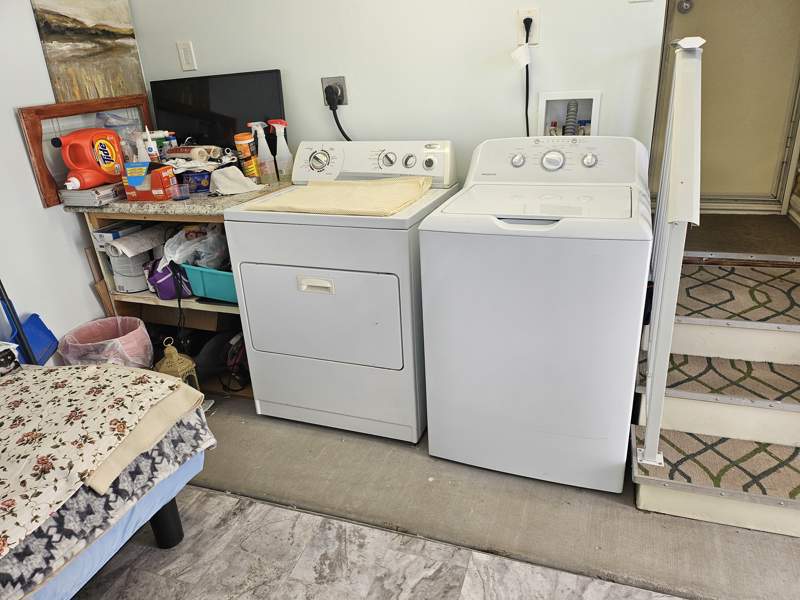 This charming 432 square feet Park Model home in Quail Run RV Resort features a cozy living room, a spacious master bedroom, a versatile bonus room that could be used as an office or guest room, a fully equipped kitchen with a breakfast nook, and a convenient laundry room. The home also includes a carport, storage shed, patio, and durable aluminium siding with asphalt roofing. Inside, the home boasts modern appliances such as an oven, fridge, dishwasher, microwave, garbage disposal, washer, dryer, and hot water heater. Additional features include forced air heating, central A/C, and washer/dryer hookups.