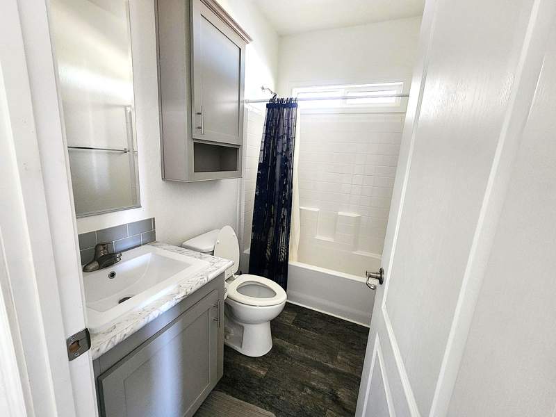 This 816 square foot manufactured home in San Tan Vista features 2 bedrooms and 2 bathrooms, making it the perfect size for a small family or couple. Built in 2020 by Clayton, the home boasts modern amenities and appliances, such as an oven, fridge, dishwasher, microwave, garbage disposal, and hot water heater. The open concept living and dining room provide a spacious area for entertaining, while the master bedroom offers a private retreat. The home also includes a convenient laundry room with washer/dryer hook-ups and a cozy patio for outdoor relaxation. With a carport for parking, this home offers convenient and comfortable living in San Tan Valley.
