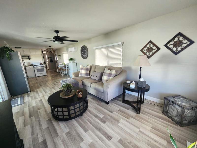 This charming, move-in-ready 1-bedroom, 1-bathroom mobile home is located in the desirable San Tan Vista community. Built in 1970 and fully remodeled, this home features a comfortable living room and a spacious primary bedroom, offering a cozy yet functional layout.