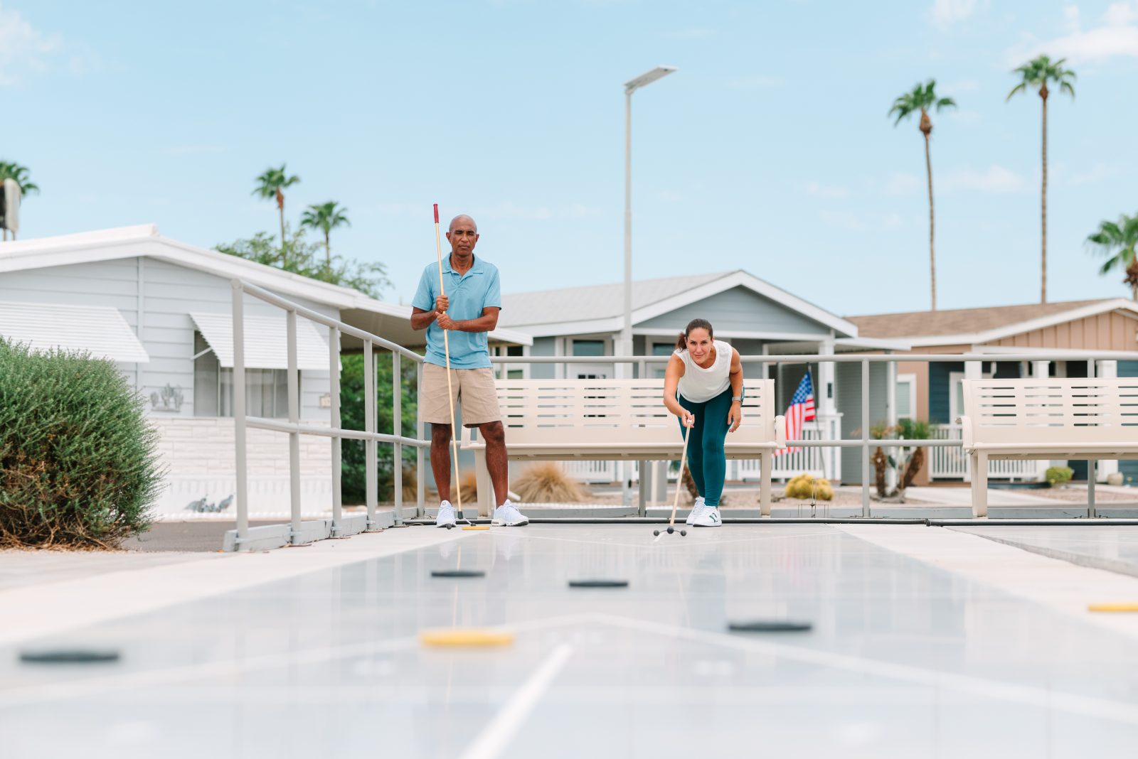 At Wildwood, our amenities are designed for relaxation, fun, and connection. Cool off in the 8-foot swimming pool, enjoy a friendly game of shuffleboard, or join neighbors for weekly bean bag toss and horseshoes. Many residents also look forward to regular golf outings, whether they’re seasoned players or just starting out.